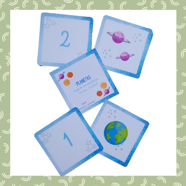 Memotest de correspondencias número y cantidades, temática PLANETAS